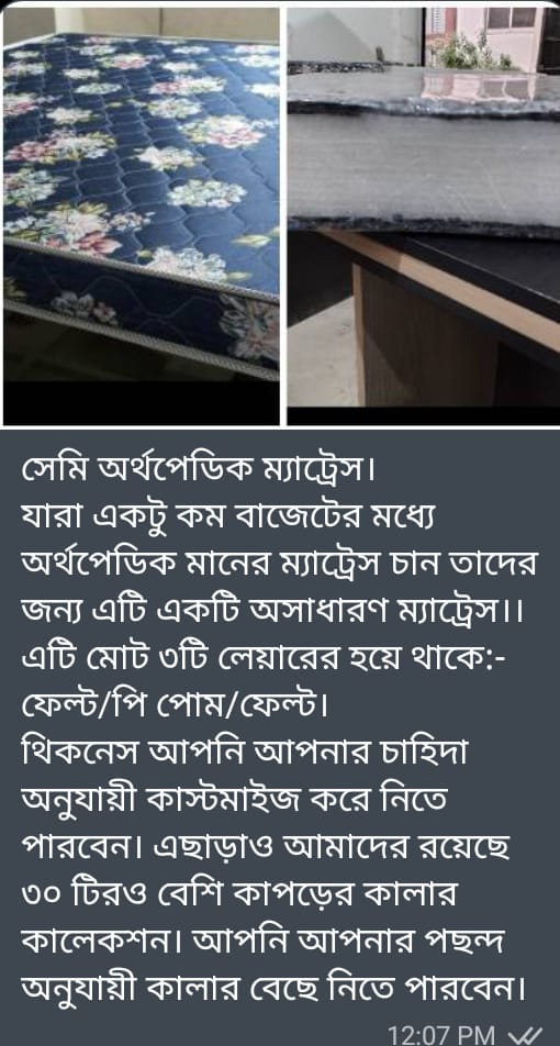 যারা কম বাজেটে ভালো মানের আরামদায়ক ম্যাট্রেস খুঁজছেন, তাদের জন্য এই সেমি অর্থপেডিক ম্যাট্রেস একদম উপযুক্ত।